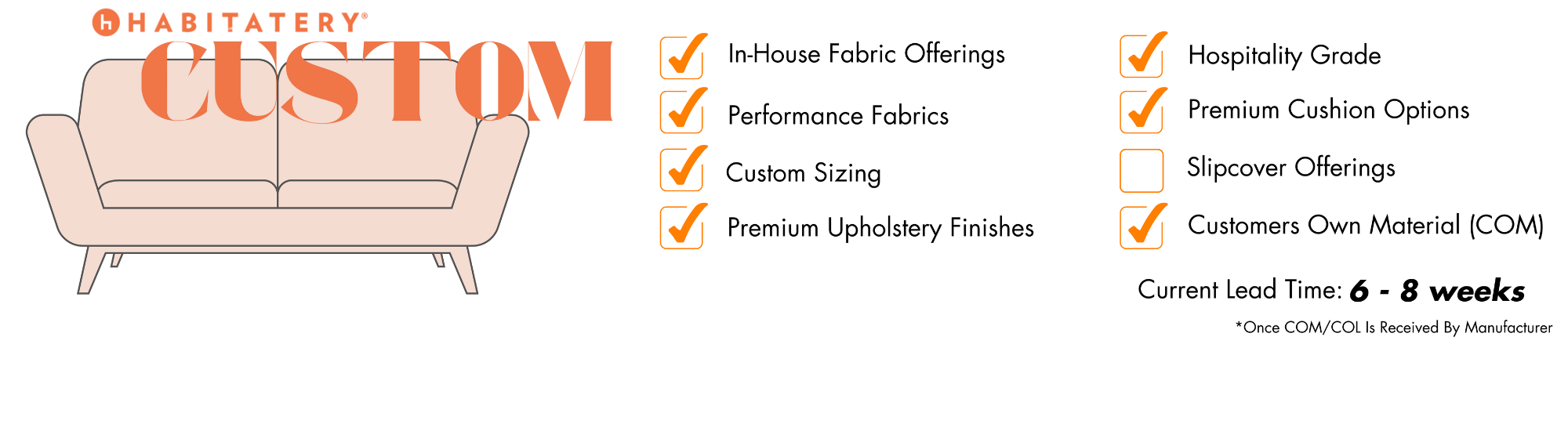 FULL-CUSTOMIZATION, including COM-Upholstery + Dimensional and Material Alterations.