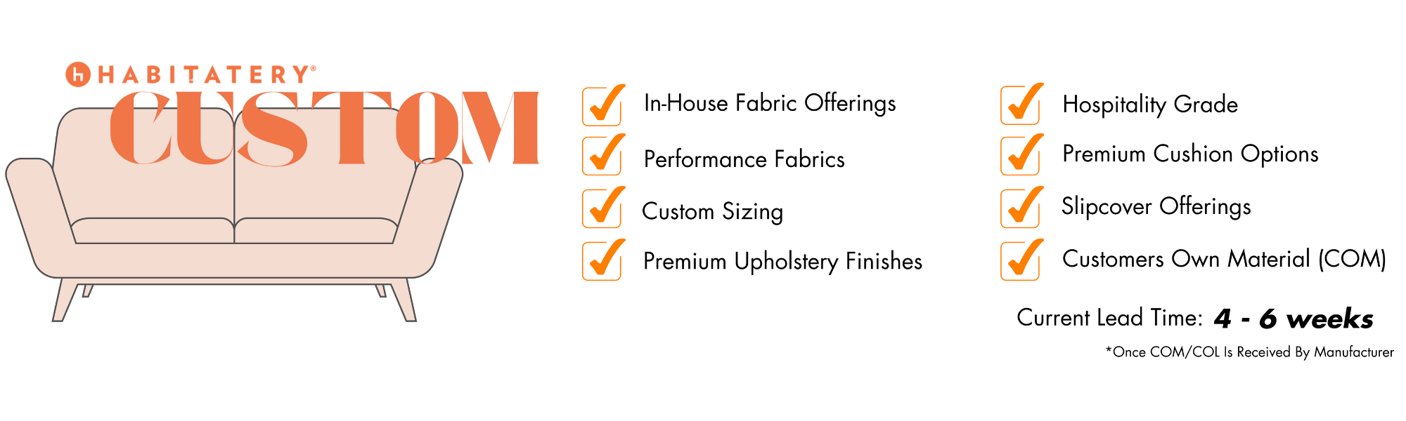 FULL-CUSTOMIZATION, including COM-Upholstery + Dimensional and Material Alterations.