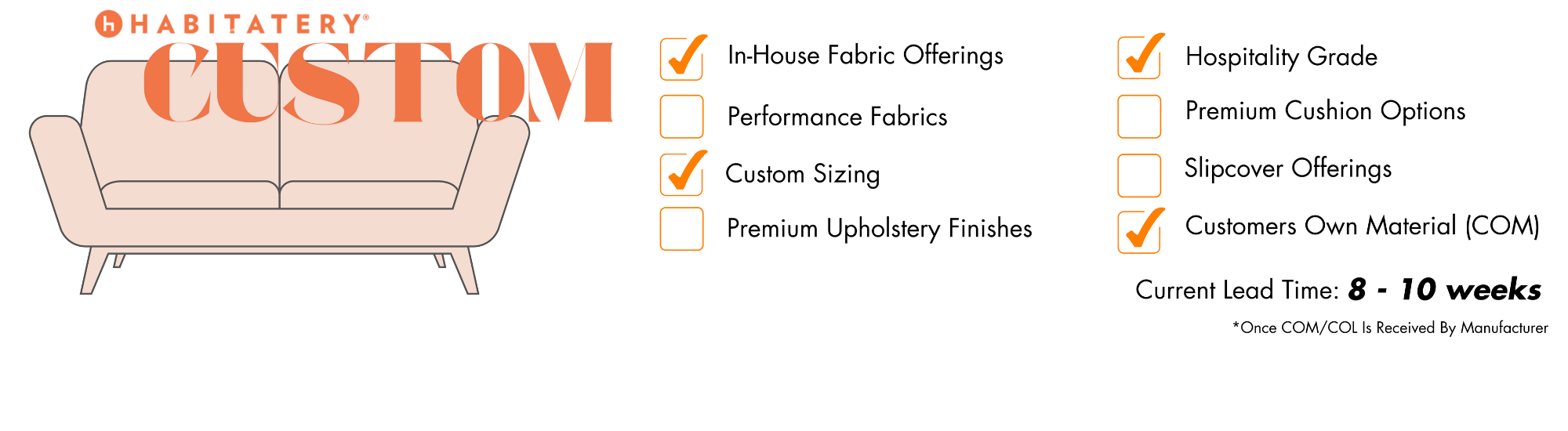 FULL-CUSTOMIZATION, including COM-Upholstery + Dimensional and Material Alterations.